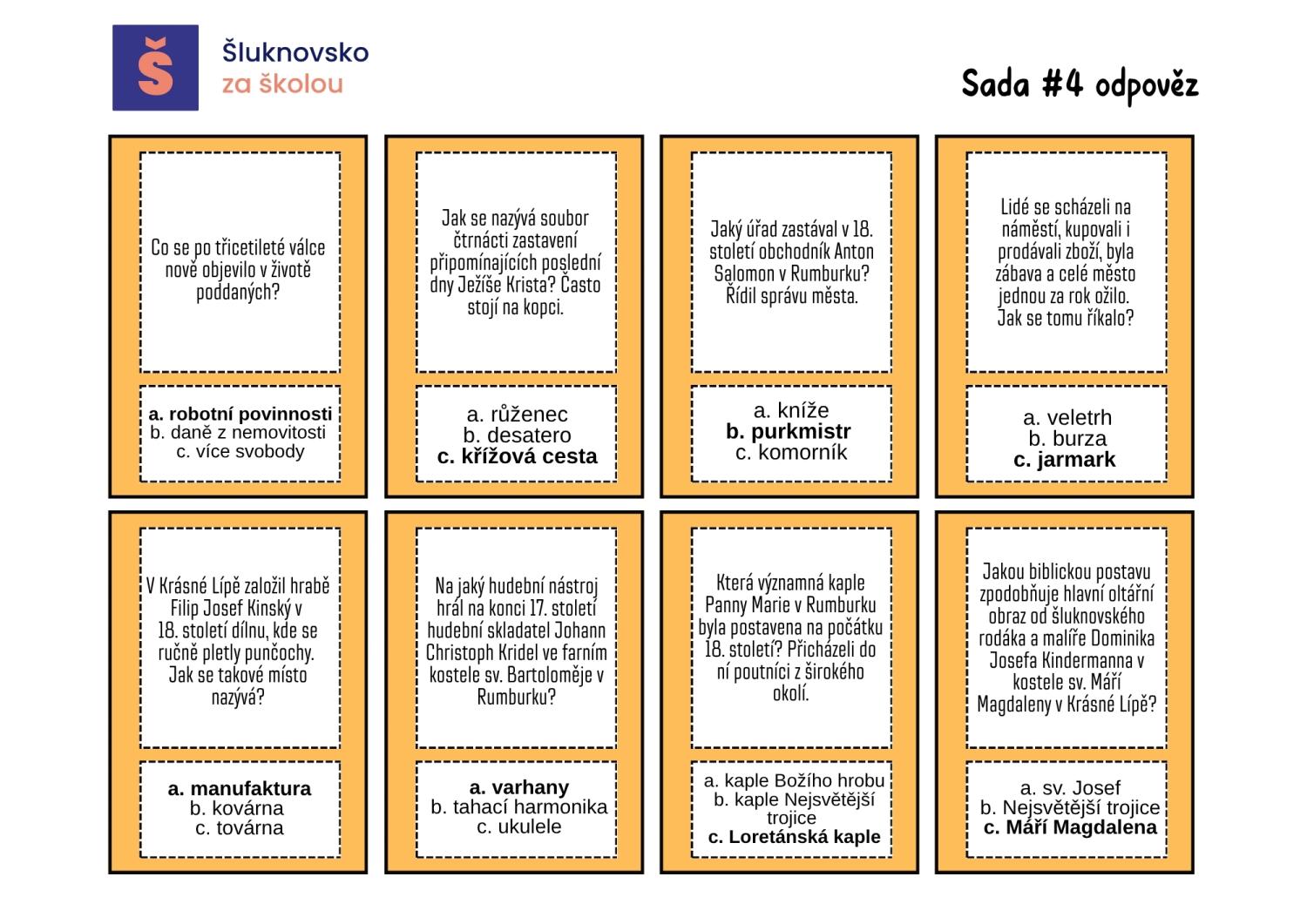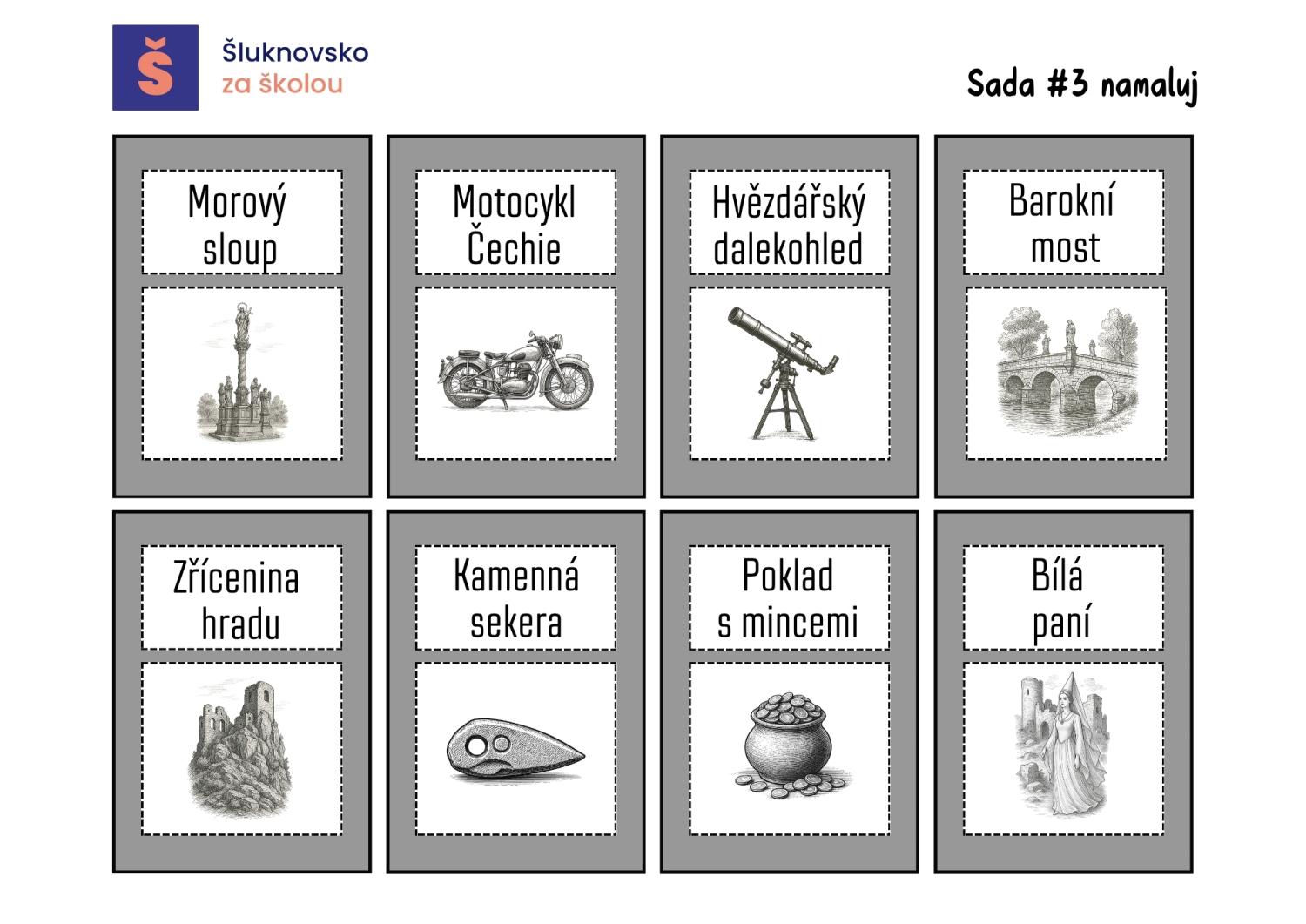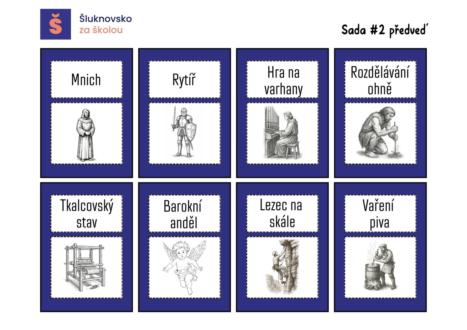 K dispozici je kompletní balíček ke stažení. Obsahuje hrací plán (A3), sadu všech kartiček a jednoduchý návod, jak hru připravit i řídit. Pro učitele je připravena také černobílá varianta kartiček, kterou lze vytisknout na barevný papír podle barev jednotlivých sad. Doporučujeme hrací plán i kartičky zalaminovat, aby dobře držely při opakovaném používání.