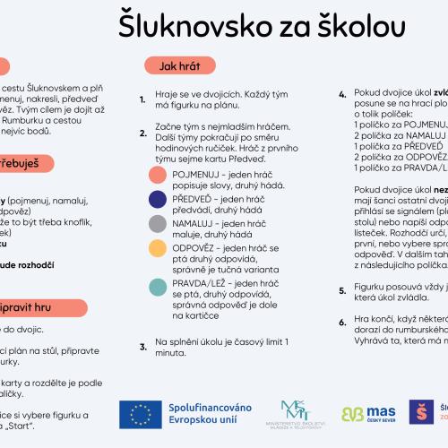 Hráči se na hracím plánu vydávají ze Startu až do Muzea v Rumburku. Po cestě plní různé typy aktivit — kreslení, popisování, pantomimu i vědomostní otázky. Každý úkol pracuje s tématy, která mohou děti znát z našeho webu.